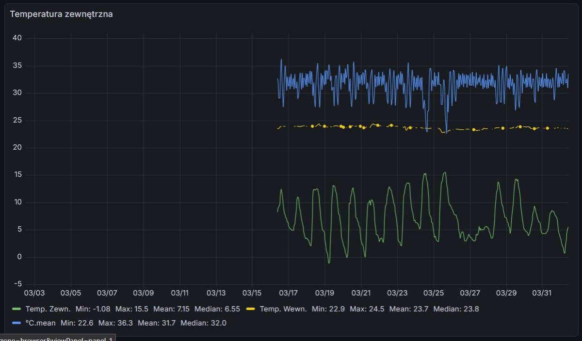 W marcu jak w garncu i po marcu 😁 Zużycie prądu przez PC 396kWh Wynik z ciepłomierza: 1551kWh COP 3,9 Temperatura zasilania 30*C Średnia temperatura w domu: Zewnętrzna Grzanie CWU pochłonęło 41,6% czasu pracy pc Energia pobrana z sieci 184kWh Realny rachunek za prąd ok 60zł Taniej grzać to chyba mogą jedynie tylko osoby w starym systemie rozliczeń pv. Teraz ciekawostka, jaka dokładność jest "ciepłomierza" i licznika energii elektrycznej w pc grupy Midea: Według pompy zużyłem: 4427kWh energii elektrycznej i wyprodukowałem: 12538kWh energii cieplnej Według podlicznika energii elektrycznej: 4427kWh Wg ciepłomierza 13496kWh energii cieplnej Różnica poboru prądu wynosi 0%! Różnica w szacowanej produkcji ciepła: 9% Wygląda na to, że można śmiało bazować na danych z pompy ciepła 👍1 punkt