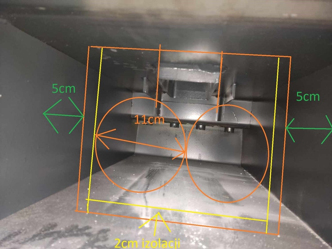 Ma uchylone środkowe drzwiczki, dużo PP, więc racuje się jak na ognisku. U siebie mam w 3/4 3/5 przymknięte otwory powietrza pierwotnego po bokach. U mnie cały kocioł biomasy pali się ~1h .... Dysza popękała mi na kawałki więc muszę zrobić nową. Jak myślicie czy zrobienie szczeliny bardziej z tyłu komory zasypowej, może spowodować, że drewno z przodu komory zasypowej nie będzie się wypalać? Choć z drugiej strony w attacku tak jest fabrycznie. Jeszcze myślałem, żeby zrobić stożkowe otwory powietrza wtórnego w teorii powinno to powodować lepsze mieszanie się gazów.