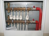 Do tego rozdzielacza podłączone jest jedynie ogrzewanie podłogowe, podzielone na 6 sekcji po około 15 do 20 metrów kwadratowych. Pomieszczenia są otwarte tj, jadalnia, salon, kuchnia i zamykana!! łazienka, która wykorzystuje część jednej sekcji z korytarza. Kocioł jest na eko groszek Hef 38 kw i z tego powodu temperatura wody waha się od 53 do 55 C. Do grzejników są osobne rozdzielacze- 3 sztuki-piwnica parter i pierwsze piętro , one nie stanowią problemu. Na poziomie parteru, gdzie znajduje się ogrzewanie podłogowe zamontowane są 3 grzejniki do dogrzania pomieszczenia w okresie jedynie przejściowym.