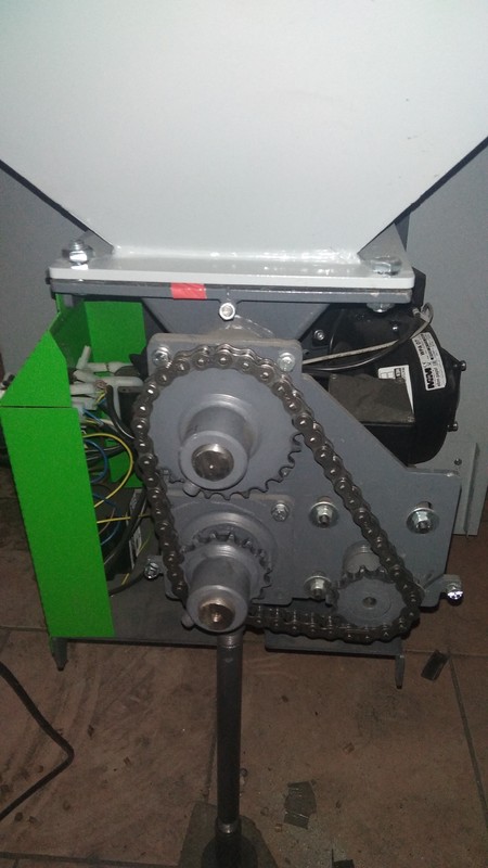 Witam proszę o pomoc wczoraj zasypalem zbiornik peletem 8 mm kupiłem na szybko jaki inny niż zwykle rozpalił potem wygasł i z tego co widzę nie podaje paliwa nawet przy pracy ręcznej, ślimak rusza jakby do przodu i to tylu po ale nie kręci się nic nie wypada wydaje mi się że zapchal się ślimak(foto) proszę o porade czy mogło tak być jeśli tak to jak wyczyścić jak się do tego zabrać czy rozebrać z tej strony jak na zdjęciu (zdjąć łańcuch?)