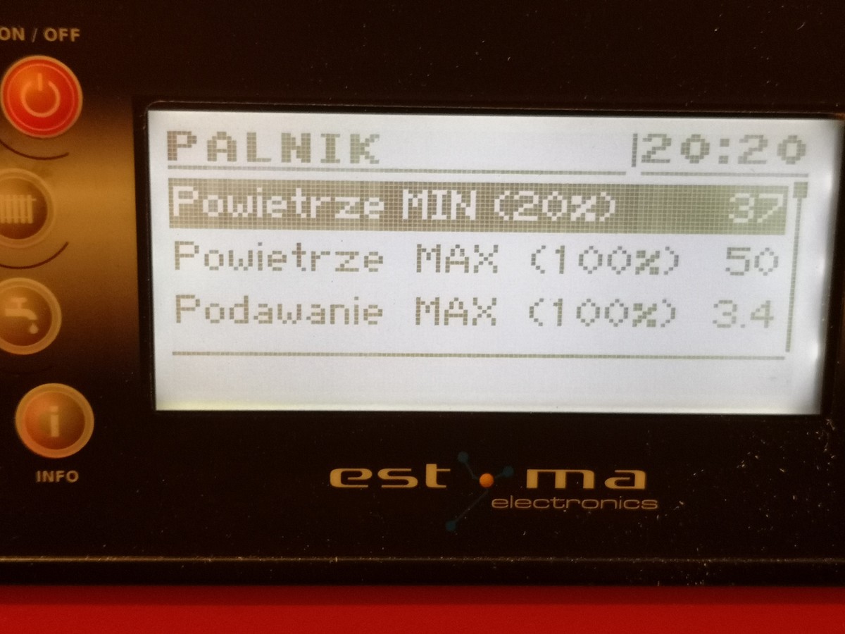 Cześć, Mam dokładnie ten sam model pieca ze sterownikiem estyma slim. Od dłuższego czasu mam problem z piecem i podejrzewam, że to wynik złych ustawień. Przerobiłem już dwóch serwisantów i bez poprawy. Wrzucam ustawienia pieca plus zdjęcie popiołu. Proszę o pomoc w poprawnym ustawieniu pieca. -