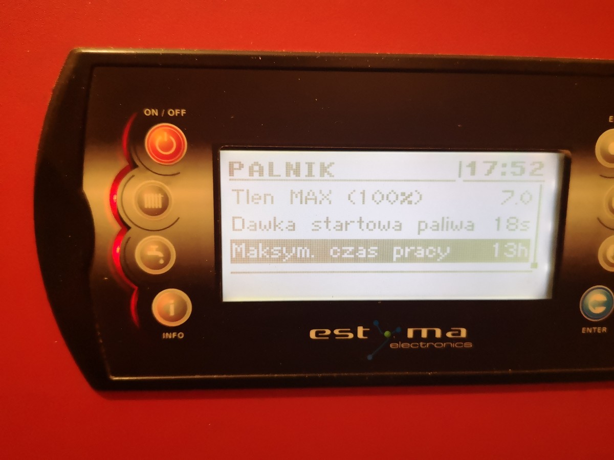 Ustawienie parametrów pracy kotła pelletowego Piec Tekla, estyma igneo slim