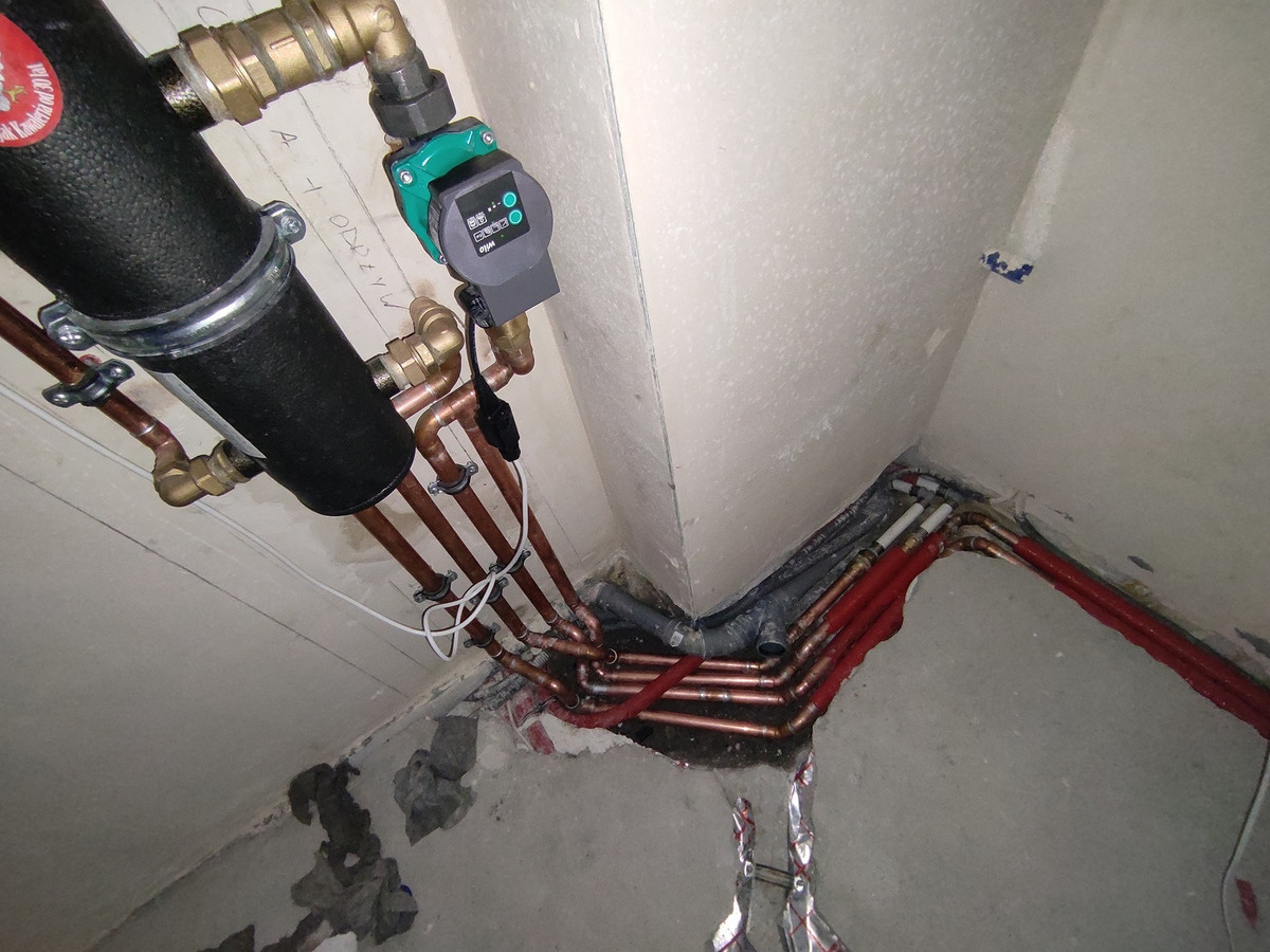 Ok, a czy taki zawór nie będzie powodował dodatkowego hałasu w kotłowni? Tak jak napisałem, pompa pracuje dość głośno, nawet na 1 biegu. Przy otwartych drzwiach słychać jej prace na parterze, zauważył to nawet serwisant kotła. Dlatego myślałem o zmianie pompy i sprzedaży tej którą mam, ponieważ być może ta modyfikacja udała by się na zasadzie plug and play. (zdjęcie). Zawór zwrotny został usunięty, a w jego miejscu jest przedłużka, sprawdzałem i pompa 18 cm powinna wejść w to miejsce. Na zdjęciu zaznaczyłem także, gdzie ewentualne miałby znajdować się zawór nadmiarowo-upustowy. Czy to dobre miejsce? Rozwiązanie wydaje się tańsze bo ten zawór jest w okolicach 100zł, ale zapewne za samą robociznę zapłacę dużo więcej bo trzeba połączyć zasilanie z powrotem, a w tym miejscu jest dość ciasno, wiec modyfikacja rur miedzianych będzie znaczna. -