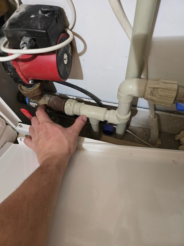 Dół już przerobiony, wyrzuciliśmy zgodnie z zaleceniami zawór zwrotny i mieszacz. Pompa już wisi, jeszcze tylko sprzęgło 😅