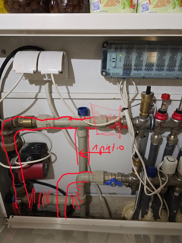 Myślę nad jedną rzeczą, całkowicie wywalić ten mieszacz bez zaslepki i zrobić tak? Na zdjęciu tam gdzie jest POMPA byłaby ta z parteru a tam gdzie jest strzałka "1 piętro" dałbym pompę zasilająca piętro i strych, ale musiałbym ja dać do góry nogami, bo w szafce na górze się nie zmieści na żaden ze sposobów. Będzie to problematyczne? Czy rzeźbić tak żeby pompa była w pionie do góry, albo w poprzek?