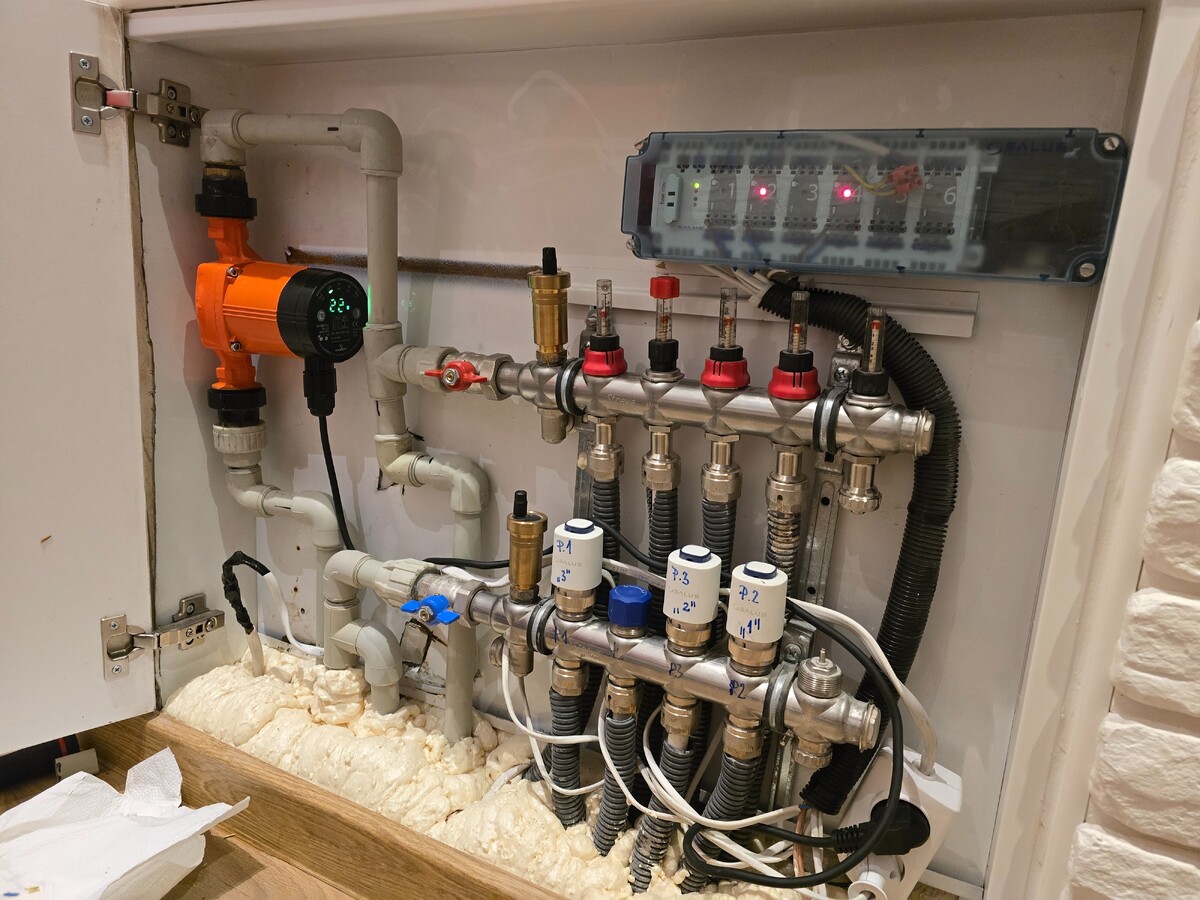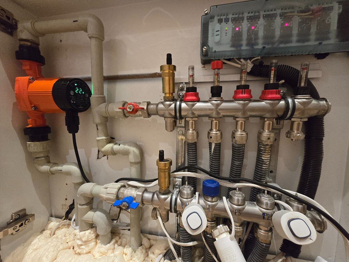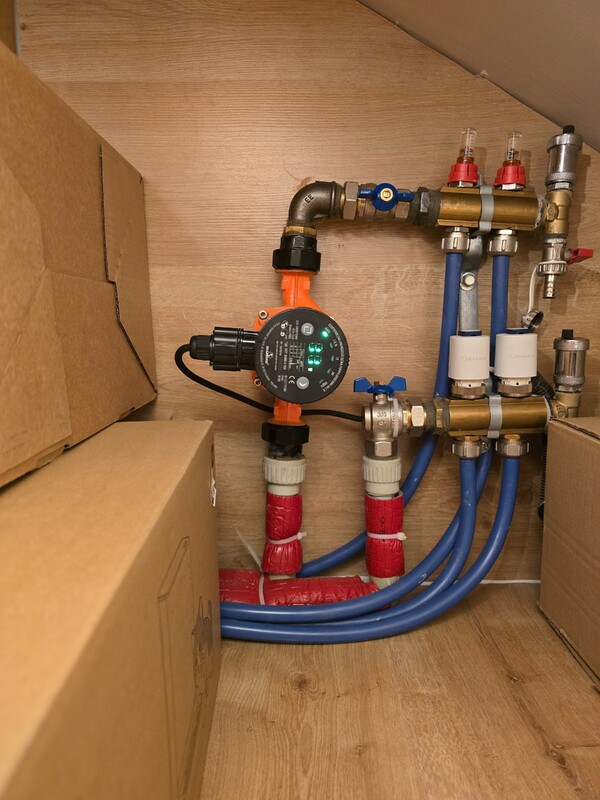 Jutro podłączamy sprzęgło, nowa pompę i przerabiamy dół. W chwili obecnej jest problem na odwrót. Przy otwartych pętlach na górze oraz strychu to pompa z góry zabiera ciśnienie partnerowi. Tam jest przepływ do 3 litrów, a na dole jest około 1 litr.