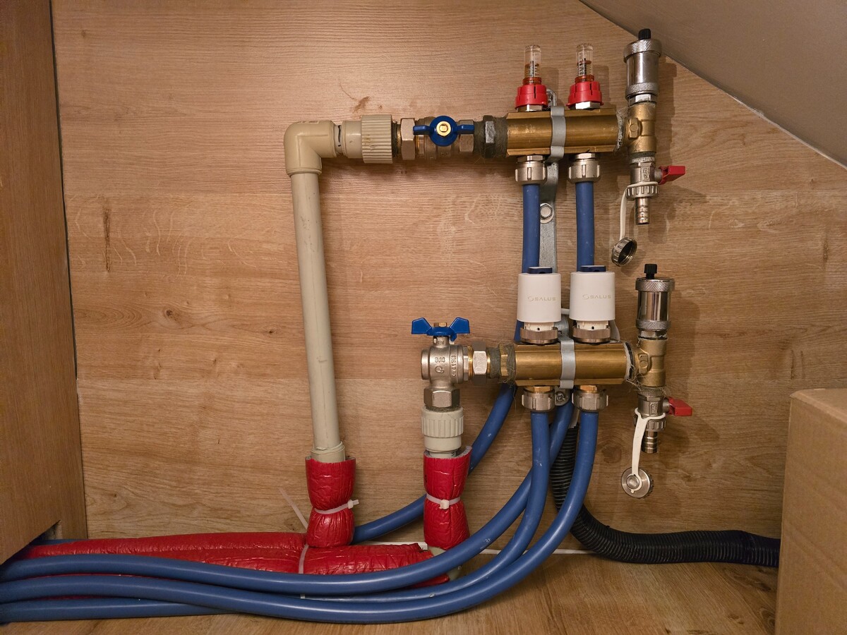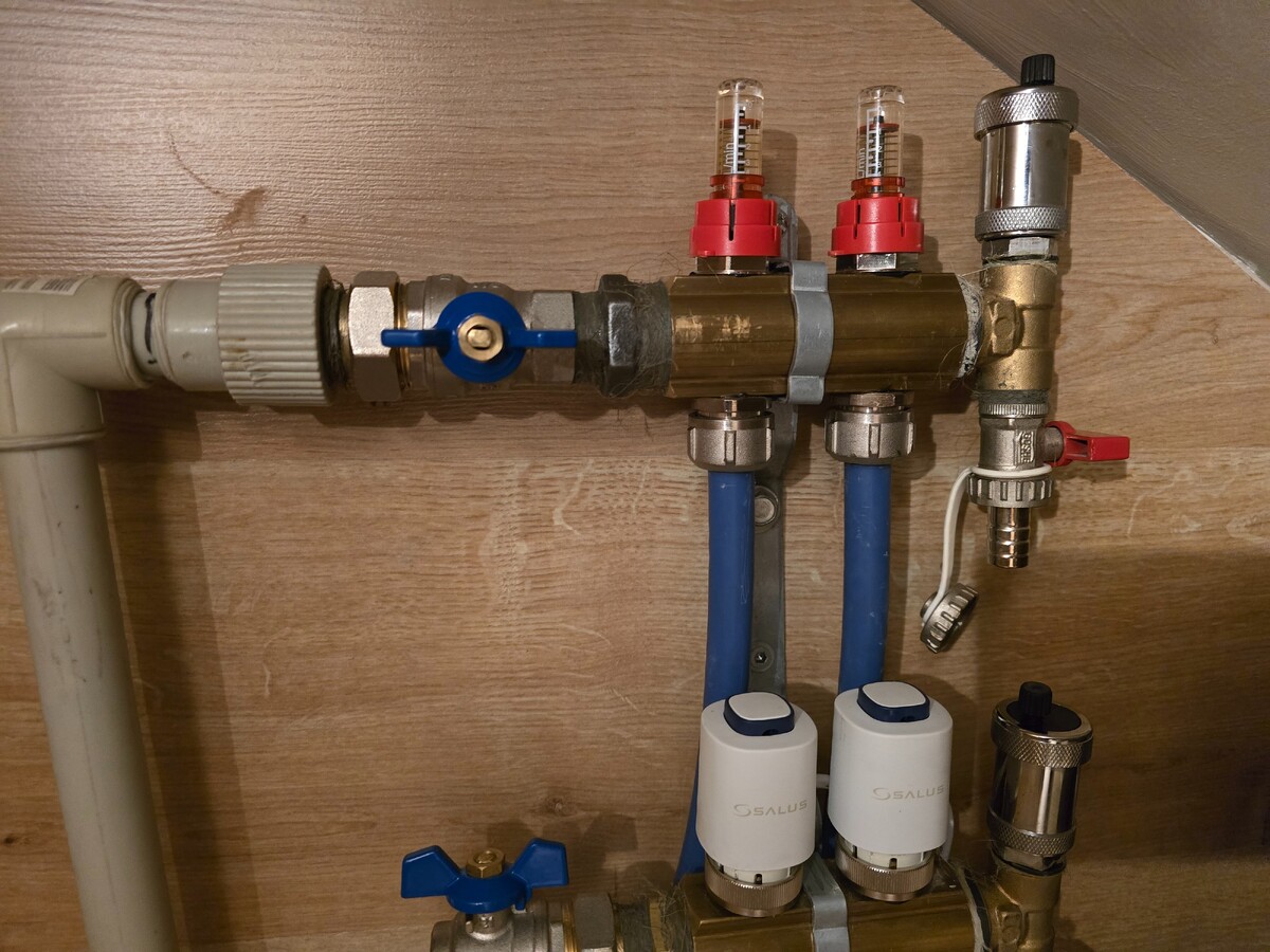 Zaczęliśmy działać od góry, po kolei 😅 Widać już nawet bez sprzęgła, że teraz otwarty strych a nie zabiera wody. Już teraz widać poprawę na otwartych wszystkich pętlach, że przepływ jestem większy bo dochodzi nawet do 3 litrów na minutę