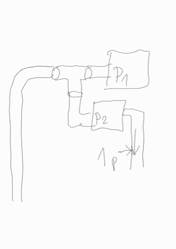 Tak, te pompę z poddasza przeniose na sam dół, to jest ta pompa na rysunku oznaczona jako P2. Muszę tylko rozkręcić jej korpus i obrócić ten kabel żeby zmieściła się w szafce. Zobaczę wtedy jak to będzie działać w parze z tą pompą DAB, jeśli wydoli i będzie dobrze zasilać całe piętro plus poddasze to ją na razie zostawię do "zepsucia". Najwyżej dokupie druga pompę dab.