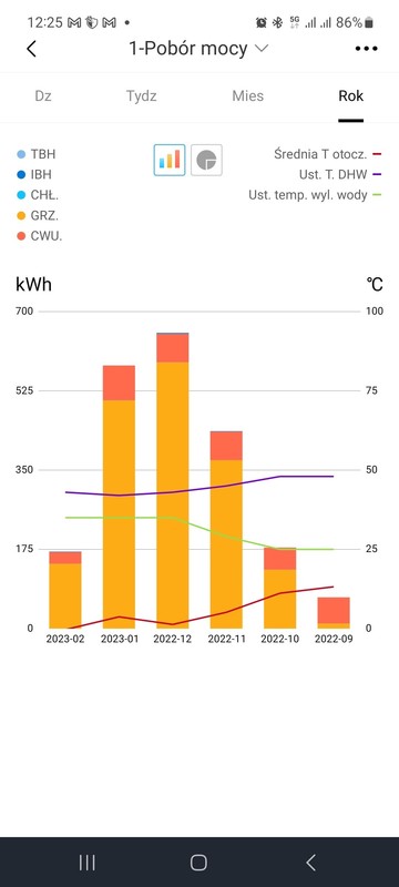 Ja na rotenso 8kW dom 130m2 użytkowej w domu dół 22oC gora sypialnie 20-21 . Zbiornik CWU 250L 4 osoby woda 43 delta 5oC. Dwa obwody grzejniki 35oC podłogówka 27oC. Brak cyrkulacji, groszku spalalem 3t na sezon CWU i CO. Przy ostatnich mrozach jak było-9 w nocy a średnia dobowa -3.27 zurzycie 27kW. Wczoraj średnia dobowa +2,55 zurzycie 20 kW
