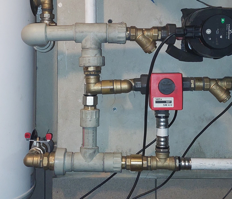 Podłączenie pompy ciepła pomiędzy buforem a rozdzielaczami