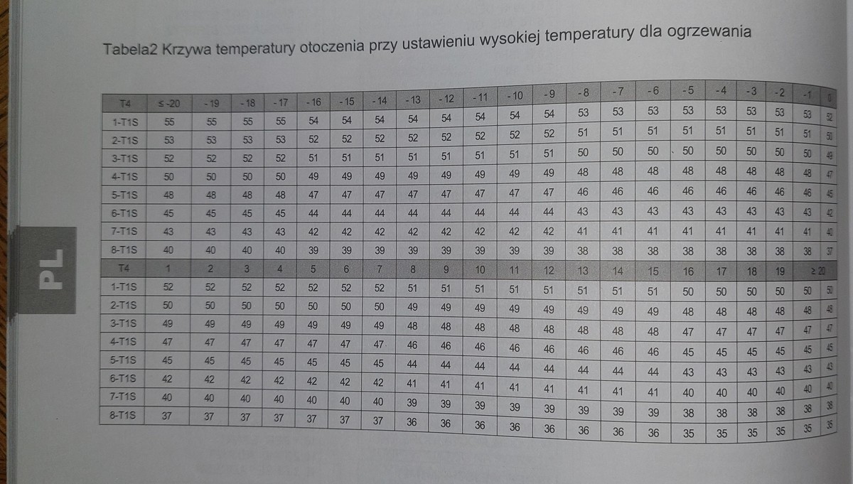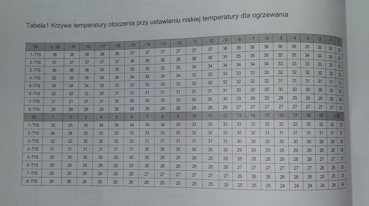Krzywe grzewcze dla niskiej (podlogowe) jeżeli mamy czujnik tw2 i siłownika. I dla wysokiej temperatury (grzejniki )