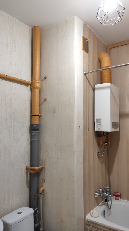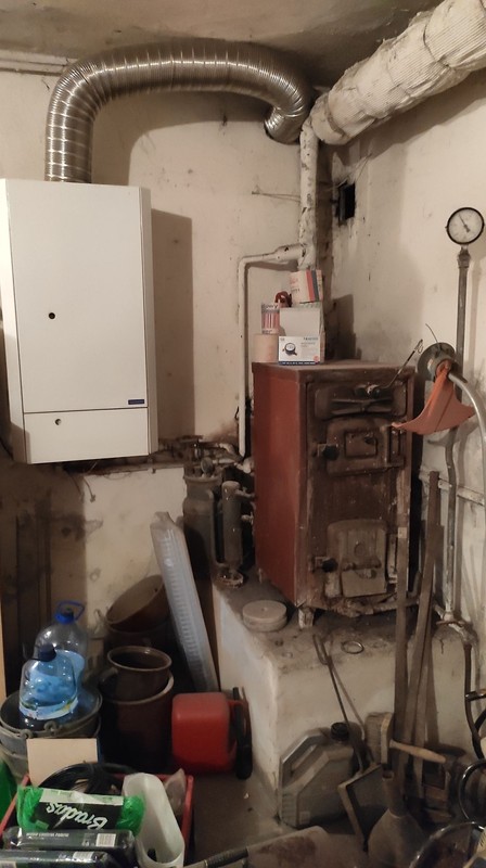 w mieszkaniu po mojej babci (3 pokoje, 85m2, kamienica 4 mieszkaniowa i 2 klatkowa, 1 piętro, nad innym mieszkaniem) jest stara instalacja grzewcza ze starym i źle działającym kotłem gazowym oraz piecem węglowym (DOZAMET K-75-1-12) w piwnicy. Całość jest wyprowadzona w 2 miejscach (piwnica i garaż) w górę budynku, na starych rurach o dużej średnicy, ze starzejącą się izolacją. Ciepło ucieka po drodze, w murach etc. W mieszkaniu, stare, żeliwne grzejniki. W łazience jest gazowy ogrzewacz wody. Ogrzewacz wody chciałbym przenieść ze ściany nad wanną, na ścianę boczną (jedną z dwóch) nad toaletą, a później go "schować". Poniżej zdjęcia.