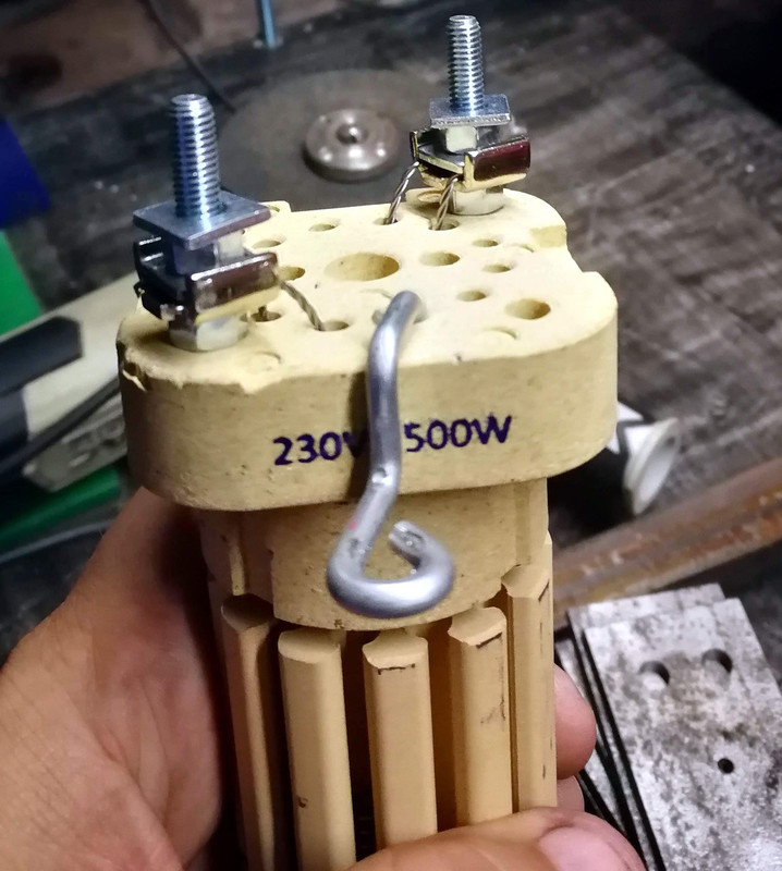 Grzałkę mam już przewiniętą na jedną spiralę z poborem mocy ok 800W, akurat była taka możliwość, bo spirala jest w kanałach ceramiki, okazało się to trywialnie proste. Drugą spiralkę odłożyłem na potem, jak ta pierwsza "padnie".