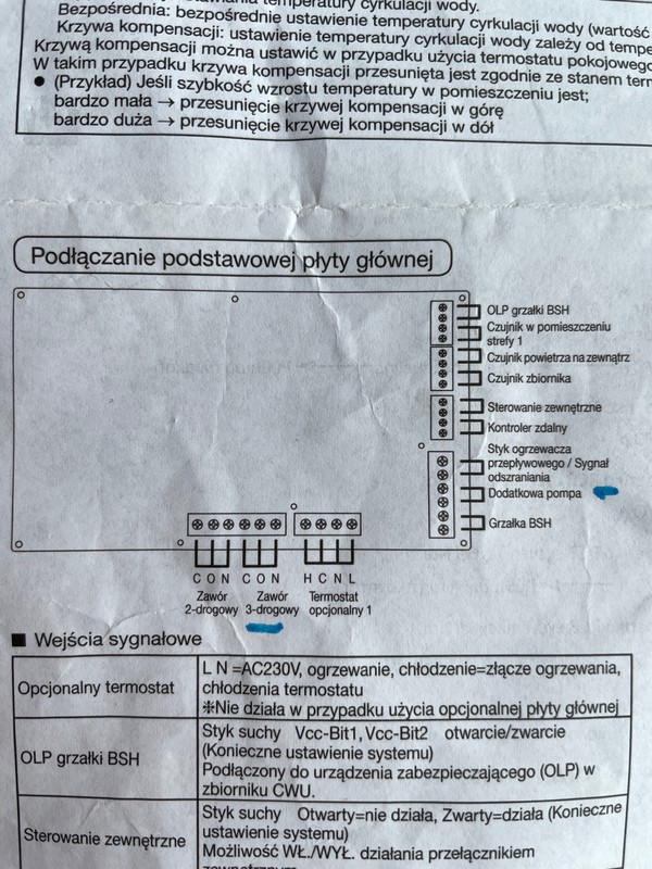 2. Drodzy koledzy forumowicze. Mam do Was prośbę o pomoc / sprawdzenie podłączenia ( okablowania ) do PC Panasonic WH-MDC07J3E5 ( Monoblok ) A dokładniej chodzi mi o polaryzację przewodów do Pompy obiegowej za buforem ciepła. W instrukcji niema słowa o biegunowości N / L wiec założyłem ze jest ona dowolna ale wole się upewnić. Oraz kolejne pytanie dotyczy sposobu podłączenia zaworu trójdrogowego. Ja podłączyłem go w sposób widoczny na zdjęciach i chciałbym się dowiedzieć czy jest to odpowiednia kolejność. Dodam jeszcze zdjęcia jak wyglada instalacja. ( 100% podłogówki ) zawór trojdrogowy Hewalex cfk 3325 zamontowany na powrocie. W miejscu gdzie brakuje połączenia w pex za buforem będzie wstawiona pompa. Z góry dziękuje za pomoc
