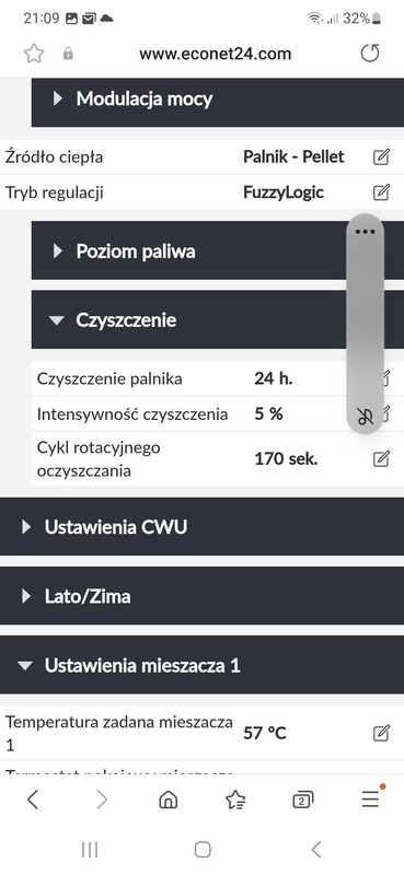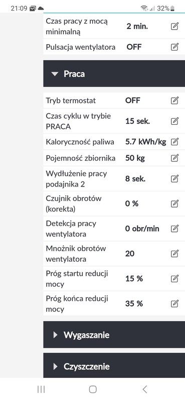 Witam może ktoś przypomnieć jaka jest zasada zmiany parametrów pokazanych na zdjęciu chodzi mi o intensywność czyszczenia i cykl rotacyjnego czyszczenia. Czy jak zwiekszę sekundową np na 180 sekund to będzie taka przerwa w obracaniu się rury .No i drugi parametr czyszczenie palnika co ma na celu Bo mam lekko niedopalony pelet po zmianie na inny bardzo delikatne. Komora spalania jest szara więc jest wszystko w normie .Piec chodzi w nadzorze więc może coś by szło doregulować -