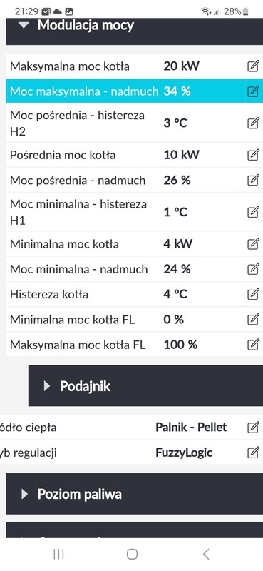 Witam a który parametr z zdjęcia oprócz kaloryczności odpowiada za zmianę sypania mniejszej dawki peletu,bo pozmniejszałem trochę te nadmuchy ale narazie brak efektu Jeszcze takie parametry na nadmuchach -