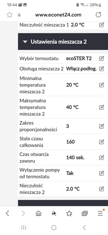 Witam może ktoś doradzić co może być przyczyną przerywanej pracy pompy podłogowej to znaczy pompa chodzi ok 2 minut i później się wyłącza na ok 20 sekund czasami ponad minutę. Posiadam Sterownik ecomax860P3-C.Na załączonych screenach widać że jeszcze nie jest osiągnięta temp.na termostacie pokojowym a pompa się ciągle wyłącza. Pompa grundfosa starszego typu ponad 14 lat. Tutaj jeszcze jedno ustawienie może tu trzeba coś zmienić żeby pompa pracowała cały czas -
