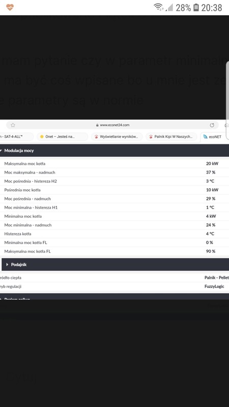 Witam mam pytanie czy w parametr minimalna moc kotła fl ma być coś wpisane bo u mnie jest zero i czy te inne parametry są w normie -