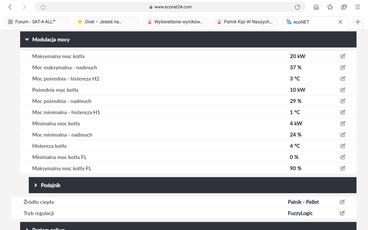 Witam czy może ktoś mi doradzić odnośnie niskiego poziomu płomienia u mnie od pewnego czasu jakby zanikał skacze między 10 a 30 procent A wcześniej miałem 100 procent trochę poczytałem ale dalej nic nie wskórałem.Piec Lumo 15kw z sterownikiem Ecomax860P3-C TOUCH zaś palnik 20kw i tak myślę czy tu ten sterownik nie jest ustawiony pod te 15kw z pieca .I drugie pytanie czy tą moc kotła zmniejszam w modulacji mocy,u mnie moc pieca to 15 kw A niby pokazuje 20kw od czego by tu zacząć żeby to jakoś poustawiać. -