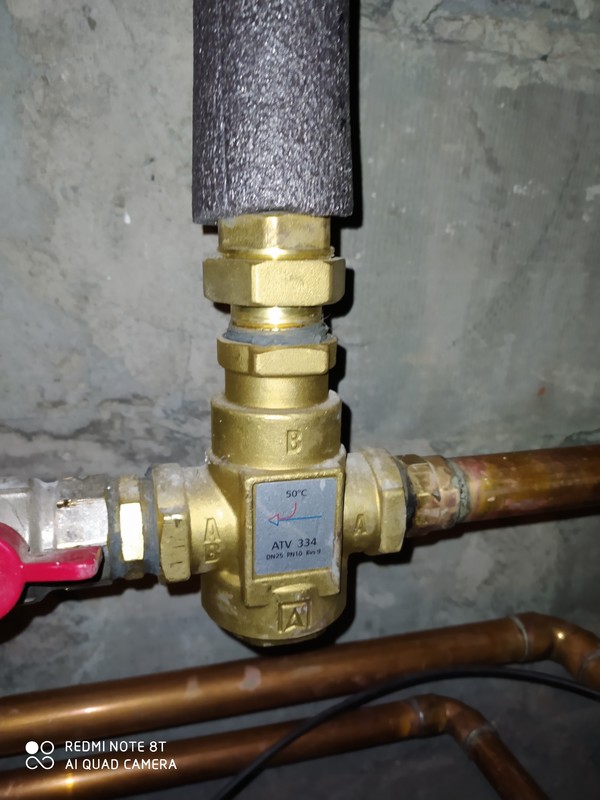 8. Tak, to jest zawór 3-D. Sprawdzałem stronę producenta i wydaje mi się, że jest poprawnie zamontowany. A - powrót z bufora AB - przyłącz do kotła B - rura zasilająca.