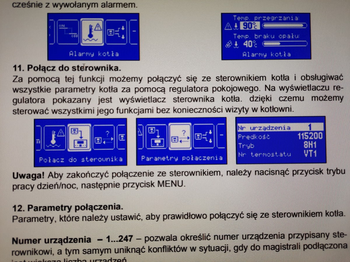5. Ustawiłem zgodnie z danymi w instrukcji. Regulator komunikuje się ze sterownikiem także wszystko wydaje się być dobrze. Mam cały podgląd informacji co aktualnie wykonuje piec na swoim regulatorze.