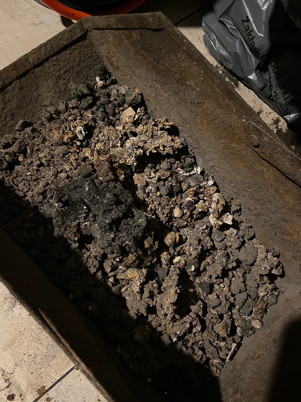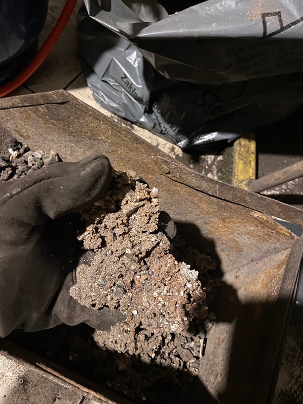 3. W kanałach cieplnych dzień po czyszczeniu zebrało się dużo czarnego popiołu