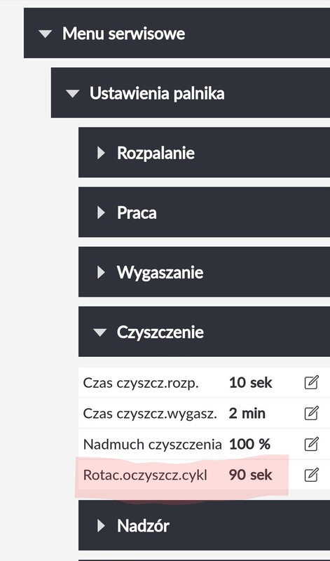 Nie wiem czy masz zwiększyć. Na razie zostaw nadmuchy. Na razie ustaw to poruszanie palnikiem: rotacyjny cykl czyszczenia i intensywność. Jaką masz w obecnej chwili? -