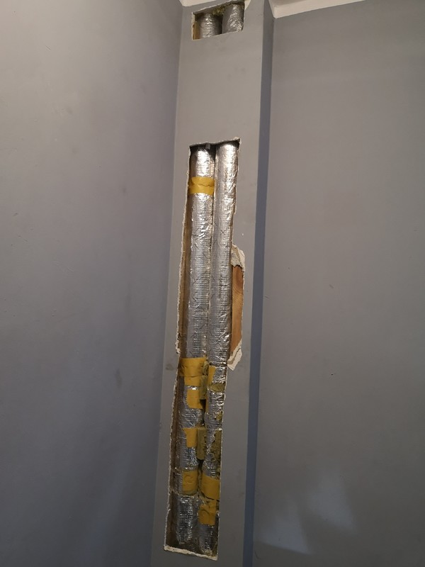 1. Witam Tak termostat w moim wydaniu wydaje się zbędny , bo tam mam ustawione żeby termostat pokojowy załączał pompę jeśli w domu temp. Spadnie w okolice +21,4 a tak się jeszcze nie wydarzyło bo w mieszkaniu mam nonstop powyżej +22. Więc sterownik na piecu z tego co pamiętam sam co jakiś czas na kilka sekund załącza pompę . Mierzyłem również temp. Na rurach przy piecu i w mieszkaniu (miałem podłączone termometry z sondami ) i tak jak z pieca wychodziło ok. +72 C to na pierwszej rurze w mieszkaniu miałem jakieś +64 C, czyli po drodze coś uciekło. W związku z tym rozprulem trochę klatki schodowej trochę w mieszkaniu i tam gdzie doszedłem ocieplilem wszystkie rury ale na wiele to nie pomogło. Ostatnie dni na ustawieniach pieca wyglądają tak że jak temp. Na piecu spadnie to piec potrzebuje ok 18 minut żeby dobić do temp. Zadanej czyli +60.. i potem stoi w podtrzymaniu ok 50 minut ..i cykl zaczyna się od nowa. Plan jest taki żeby doprowadzić druga rurkę do mieszkania żeby nie znosić bojlera do piwnicy oraz oczywiście zawór. Na zdjęciach widać jakie ingdzie docieplalem rury ( ok. 10-12 metrów ) w tych miejscach ściany zrobiły się wyraźnie chłodniejsze.
