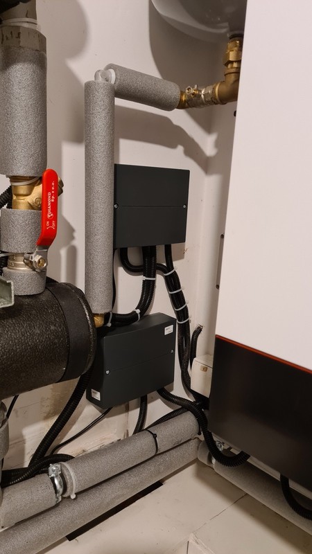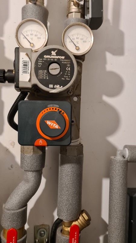 HEj 🙂 Dobrze nie dobrze , dom ma 20 lat. Ściany trójwarstwowe, 24cm "MAXA cegły dziurawki" + 9cm wełny + 2cm powietrza + 12,5cm "MAXA cegły dziurawki" , tak że szału nie ma, patrząc na dzisiejsze domy ze styropianami grafitowymi itp... Dziś byłem znowu i jest 13,5 stopnia po kolejnych dwóch dniach, ale na zewnątrz było w nocy około -2,5 st. Ale zauważyłem dziś taką rzecz. Załączyła się w nocy automatycznie jedna z pompek (DIAMOND) (myślę że przez tryb anty zamarzaniowy, który ten piec uruchamia przy minusowych temp.) Problem w tym że w aplikacji pokazuje mi że to pompka od podłogówki pracuje, a to przecież pompka od grzejników chodzi. Więc wszystko wskazuje na to, że jednak pompki/pompka są źle wpięte do tych dwóch czarnych "skrzynek" sterowników, modułów (Viessmann EM-P1 i EM-MX widocznych na ścianie) Więc postanowiłem włączyć na chwilę podłogówkę w aplikacji , bo chyba tak piec chciał a w rzeczywistości ruszył pompkę od grzejników. Po włączeniu podłogówki zaczęły się robić grzejniki ciepłe, mimo tego że były wyłączone od kilku dni. Już sam nie wiem co ja mam tu narobione. -