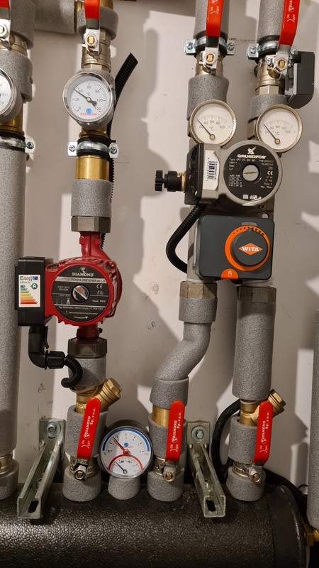 1. A który to zawór 3D ? 2. Obie pompy widoczne na zdjęciach (z prawej podłogówka GRUNDFOS) z lewej grzejniki (DIAMOND) pracują cały czas na III najwyższym biegu 24h na dobę , czy to normalne? -