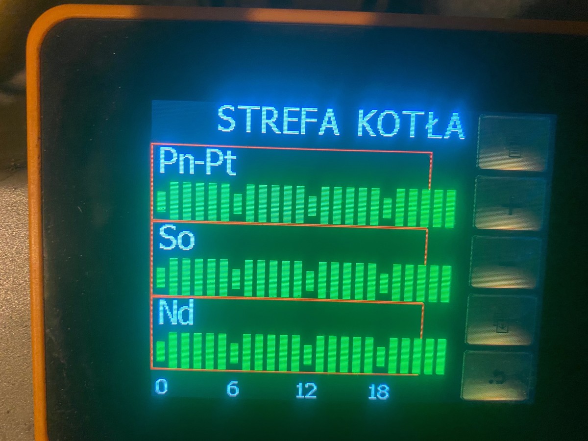 Posiadam piec Dragon 24 kW pleszew ze sterownikiem Agros Plus PID Plus . Mój problem polega na ty, że kocioł pobiera ogromne ilości pelletu (dom powierzchnia 150 m2) w ostatniej dobie pobór pelletu 47 kg. Ustawienia palnika: czas poboru pelletu - 10 s, czas pauzy - 10 s. moc nadmuchu max - 55%, min: 45 %, moc pracy minimalna - 40 %.  Temperatura zadana na kotle 56 stopni. Pompa CO temperatura włączenia 45 stopni. Kocioł dobija temperaturę do 60 stopni, po czym temperatura spada na kotle w ciągu 45 minut do wartości 53 stopnie i piec ponownie się włącza. Posiadam regulator pokojowy temperatura ustawiona 21 stopni, większość czasu regulator pokojowy blokuje dostarczanie ciepła na grzejniki gdyż jest osiągnięta ustawiona temperatura,