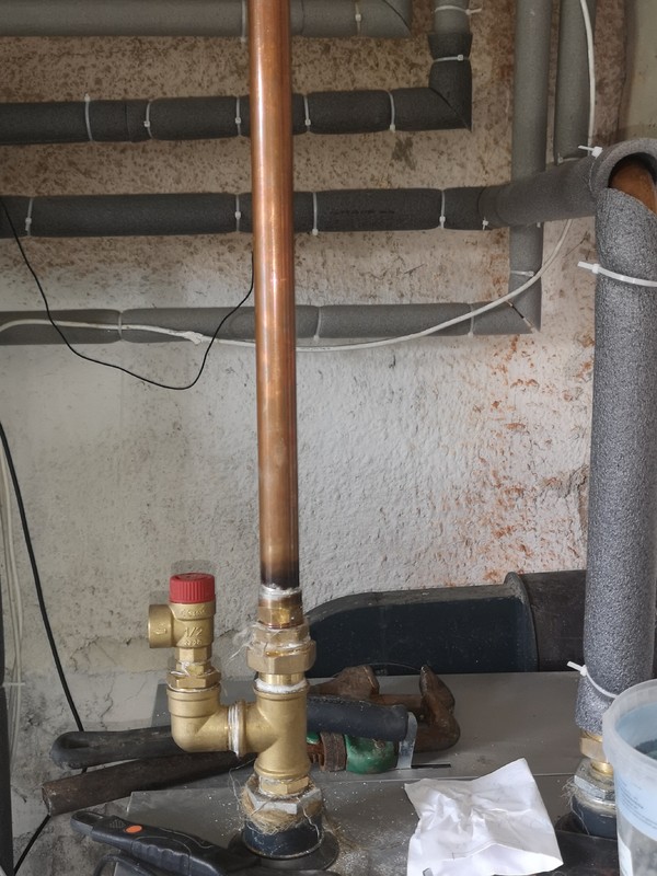 Oczywiście będzie dobrze zaizolowane jak i rury doprowadzające i przelewowa.Zawór jest, widać na zdjęciu, tylko widzę że drugi hydraulik założył 2,5 bara. Bo mówił że na kotle dopuszczalne ciśnienie robocze to 0,25Mpa.. Nie wiem czy nie lepiej 1,5 bara dać?