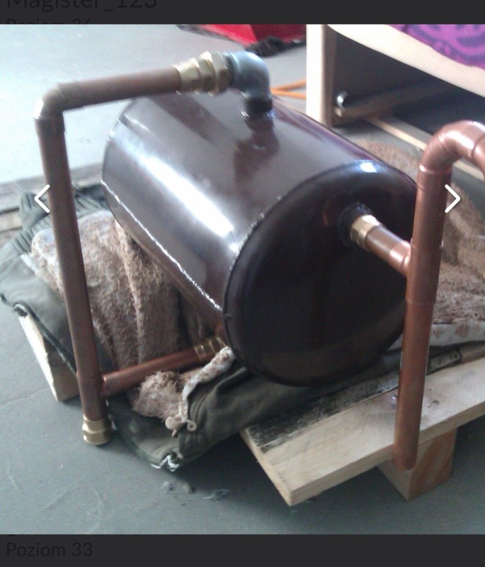 Chcę zlecić hydraulikowi żeby mi tak jak na focie poniżej zrobił zbiornik wyrównawczy ale on twierdzi że to nie ma sensu. Oczywiście zbiornik będzie więcej i rura miedź fi 28 mm wszędzie. Rura wzbiorcza podłączona do drugiego króćca z kotła.