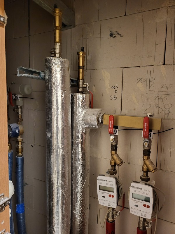 Witajcie, chciałbym prosić o pomoc w ustaleniu przyczyny wibracji od instalacji grzewczej w mieszkaniu na ostatnim 6-tym piętrze. Blok mieszkalny został oddany do użytku w 2021 roku, więc instalacja grzewcza jest nowa. W zeszłym roku oraz w tym roku od końca września do połowy grudnia żadne wibracje nie były słyszalne. Nagle w połowie grudnia w całym mieszkaniu pojawiły się wibracje o niskiej częstotliwości, które są bardzo męczące i denerwujące. Ustaliłem, że muszą pochodzić z instalacji grzewczej, ponieważ jest ona rozprowadzona pod wylewką w całym mieszkaniu i dlatego te wibracje są słyszalne wszędzie. Sprawdziłem sąsiednie dwa mieszkania i tam też były one słyszalne. Jedno mieszkanie jest podpięte pod ten sam pion, co moje mieszkanie, natomiast drugie mieszkanie jest podpięte pod drugi pion w klatce. W moim mieszkaniu, które jest zlokalizowane blisko szachtu te wibracje były najbardziej odczuwalne. Przypuszczam, że problemem jest pompa obiegowa, jednak serwisant twierdzi, że pompa jest dobrej jakości i jest nowa, dopiero na końcu brałby ją pod uwagę. Stwierdził, że zamierza usztywnić rozdzielacz, bo coś jest poluzowane. Przekazałem mu informację, że obejmując dłonią odpowietrznik na zakończeniu rury z ciepłą wodą w moim szachcie są odczuwalne znaczne wibracje, natomiast w bloku obok te wibracje są mało odczuwalne. Dodam, że poziom ciśnienia jest ustawiony taki sam w jednym miejscu na wszystkie bloki. Po mojej sugestii serwisant stwierdził, że wymieni odpowietrznik na nowy. Załączam dwa zdjęcia zakończenia mojego pionu. Proszę o podanie prawdopodobnej przyczyny powstania nagłych wibracji w nowej instalacji grzewczej.