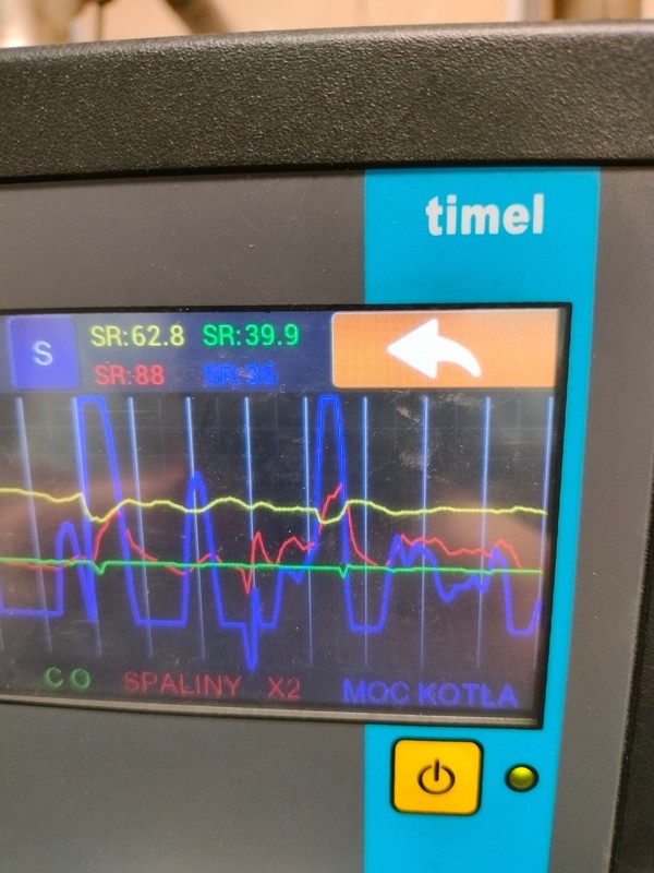 Czujnik powrotu mam przy samym wyjściu z kotła. Różnica pomiędzy zasilaniem a powrotem wynosi około 4 lub 5 stopni więc nie jest źle. Teraz po zmianie dmuchawy i ustawieniu wstępnie powietrza widać że sterownik bardziej moduluje.