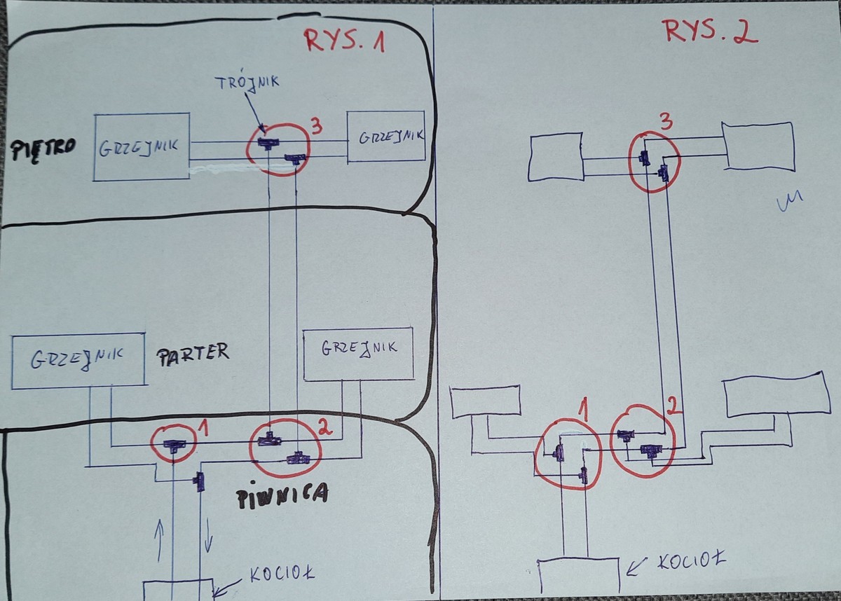 1. /witam wszystkich. mam pytanko odnośnie przyłączenia grzejników do pionu. kolorem czerwonym zaznaczyłem dwa sposoby odejscia do grzejników. ktory z nich jest prawidlowy. zaznaczam ze pytam tylko o te przyłącza grzejników. jeżeli któryś z kolegów mógłby pomóc byłym wdzięczny.