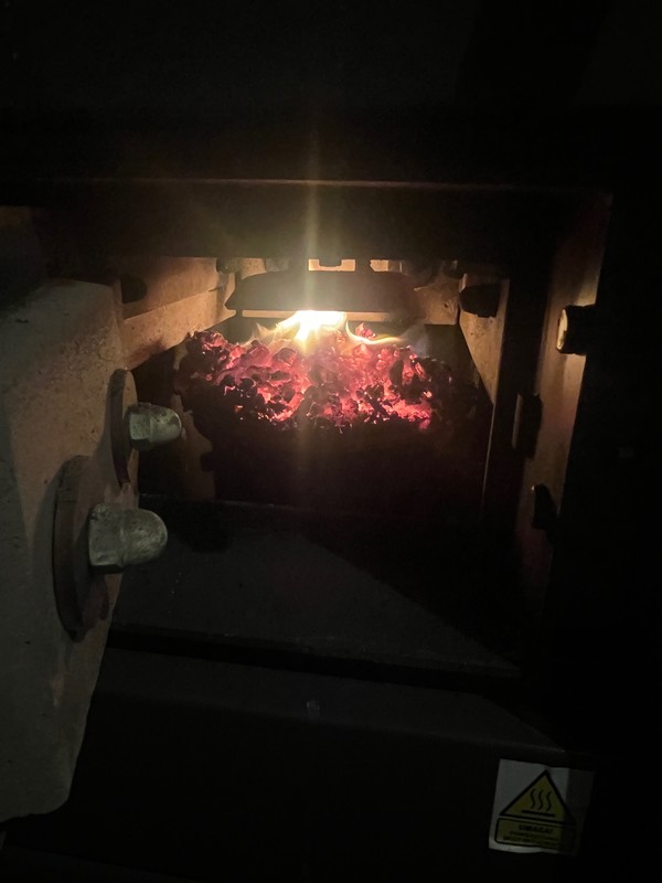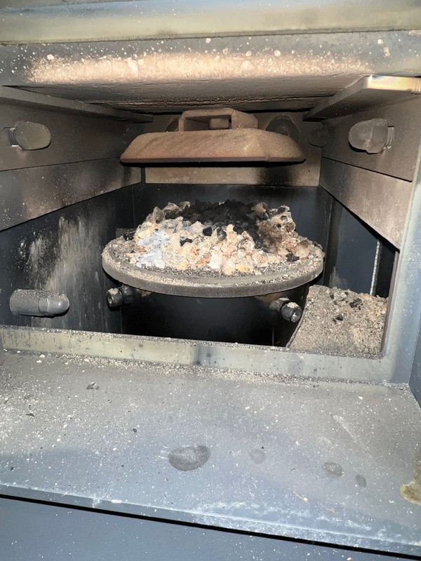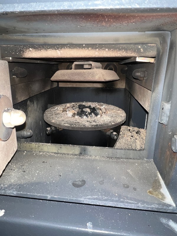 Dobór mocy kotła co SAS Efekt 14kW, zbyt mały ?engance odpowiedział(a) na engance temat w Kotły z podajnikiem Serwisant był, wymienił wyświetlacz i przywrócił kocioł do ustawień fabrycznych. w trybie letnim w PID mam ustawienia jak poniżej. dopiero uruchomiłem kocioł po wizycie instalatora, od 3 godzin trzymał żar, i teraz rozpala się sam. Jestem w szoku 😊: Współczynnik PID Moc kotła 100% Korekta wentylatora dolna 0 Korekta górna 0 PID nadzór Czas podawania 2s Przerwa 5min Czas pracy wentylatora 10s Czas przerwy wentylatora 7minut Obroty 45% Ustawienia serwisowe Parametry pracy Min praca podajnika 1s Maksymalna 10s Minimalna przerwa 45s Maksymalna 70 Min. Wentylator roboczy 20% Maksymalny 38% Min obroty 700 Max 1950 maks temp spalin 220 na aktualnych ustawieniach przy pracy, palnik wyglada jak na zdjęciu poniżej.
