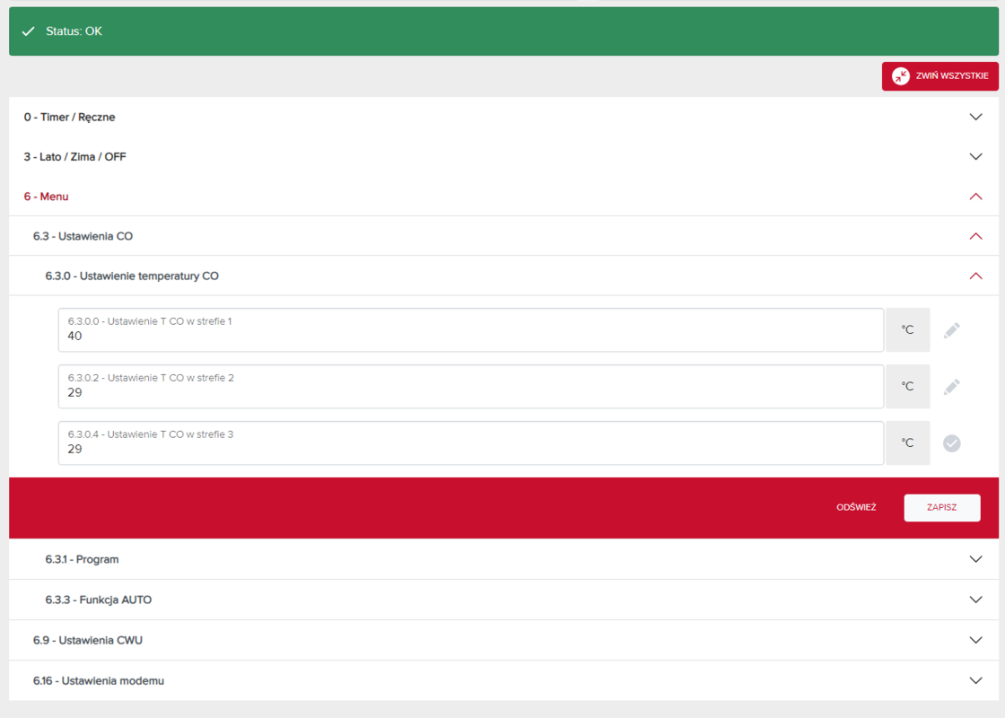 Po podpięciu modułu internetowego obawiam się, że Temperatura w Strefie 1 zmieniła się na domyślną wartość na 50 stopni C, i ją zmeniłem na najmniejszą jaką mogłem w aplikacji na 40 stopni. załączam zdjęcie. W obawie że na podłogówkę zostanie podana temperatura 50 stopni.