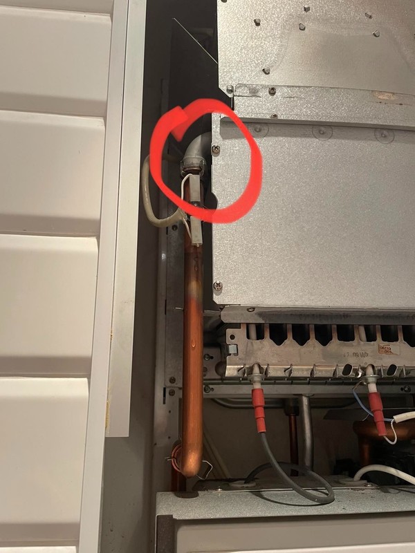 dziś pierwszy raz włączyłem grzanie grzejników i wody (do mieszkania wprowadziłem się niedawno i nie miałem potrzeby) w swoim kotle. Po paru minutach piec przestał grzać, pojawił się brud na urządzeniu (jakby pył, popiół) i spadło ciśnienie. Po zresetowaniu urządzenia wyskoczył błąd 09. Gdy przekręciłem czarne pokrętło od spodu pieca, a ciśnienie zaczęło rosnąć, z miejsca zaznaczonym na zdjęciu zaczyna wyciekać woda. Co to może być? Z góry dziękuje za pomoc.