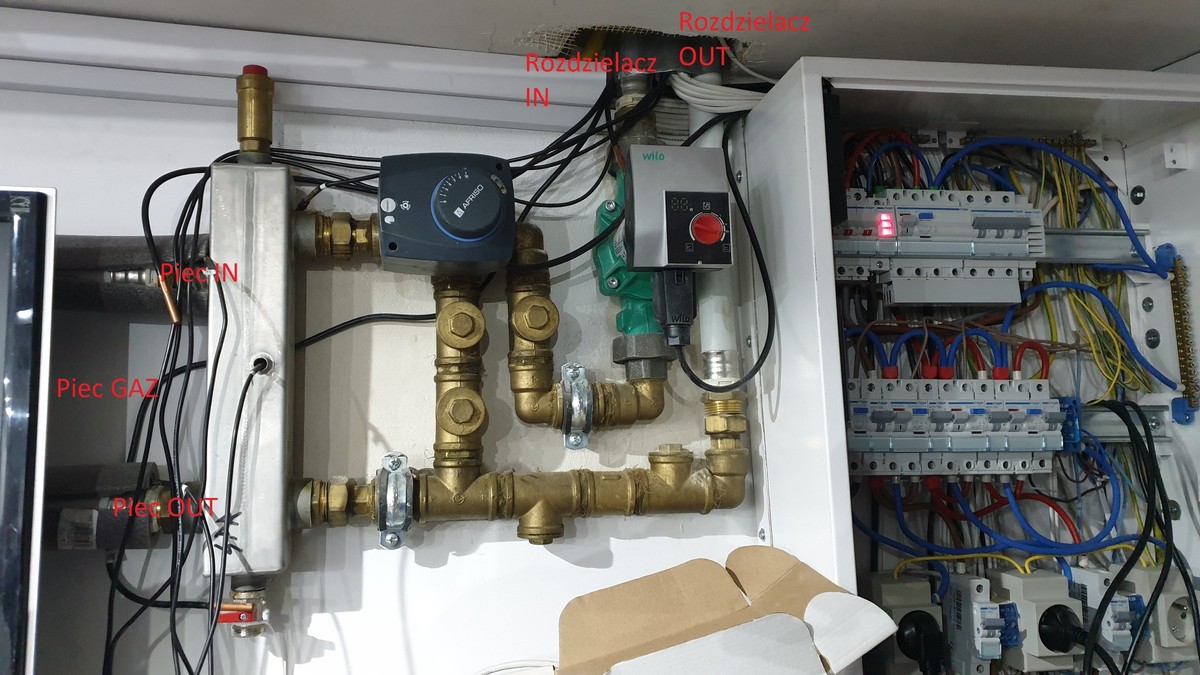 Sytuacja przedstawia się następująco. Mam piec gazowy. Instalacja jak na zdjęciu. Rozdzielacz bezpośrednio nad sufitem piwnicy w której jest instalacja na parterze max parędziesiąt centymetrów wyżej (całość to podłogówka).