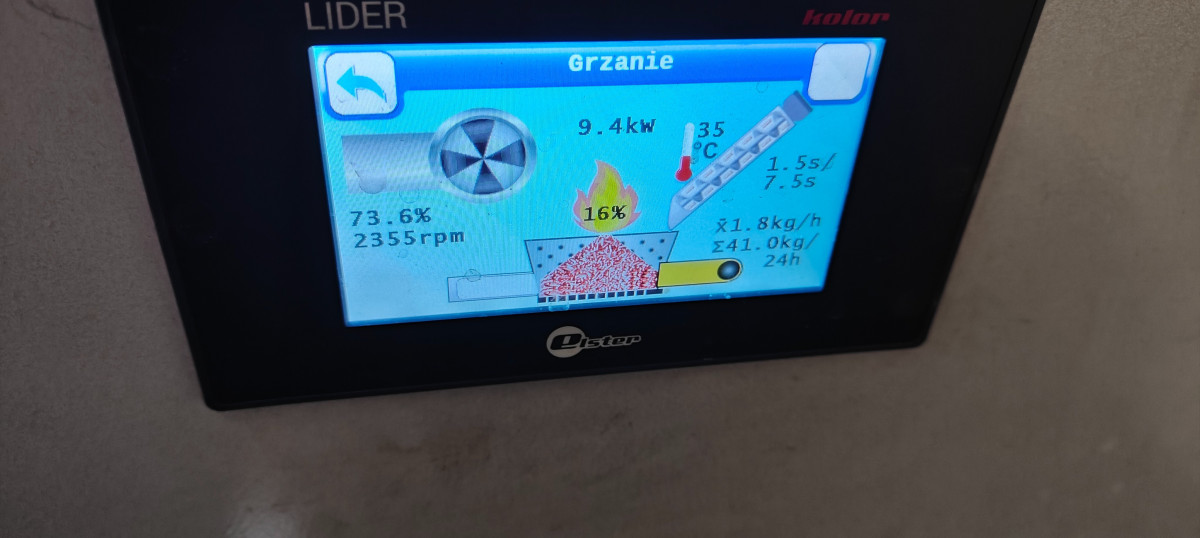 Odpaliłem piec słychać taki jak by tłumienie przez te płomieniówki. Lecz czy problem bez tych sprężyn taki że płomień skacze https://drive.google.com/file/d/1WzSFP7i2cEh2Qcg8FWn3BA_nZFAl7f8P/view?usp=drivesdk Dodatkowo piec przez brak ciągłego 100% płomienia ta temp mu spada gdzie nie może osiągnąć tych 65 gdzie nie to jak wam pisał na początku tego posta pies gubi nie może dalej osiągnąć choć choć pies chodzi od godziny czasu więc wiem że ta temperatura się powinna mu wyrównać no bo wiadomo pompa też musi rozgonić więc siłą rzeczy ta woda się schładza ale to chyba tak nie wyglądam w praktyce https://drive.google.com/file/d/1yTOVaAS0RlzJp3kD6dxqqgz4H5wsdGI6/view?usp=drivesdk Aktualizacja. Chyba jednak stabilność płomienia ma znaczenie bo teraz widzę pisząc ta treść. Że zaczął sobie zbijać moc teraz ma 9,4 w dół co widać na foto a i temp była już 56 st -
