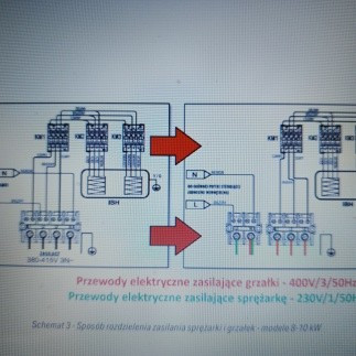 Tak PC załancza najpierw 3kw a później 6kw razem 9kw tylko czy te 6kw to grzałka trzy fazowa czy może jedno lub dwufazowa. Rozdział na grzałki według schematu jest 400V/3/50Xz U mnie jest na górze i wychodzi od niego niebieski wężyk. Nie musi tylko odpowiedni zład wody. Konsultowałem z infolinią Kaisai i w instrukcji też tak pisze. Tak pisze w instrukcji ale niektórzy instalatorzy dają 3x16A i 25A przy rozdzieleniu sprężarki. Można ustawić żeby 6kw się nie załączała tylko nie doszedłem jeszcze czy dipem czy w sterowniku.