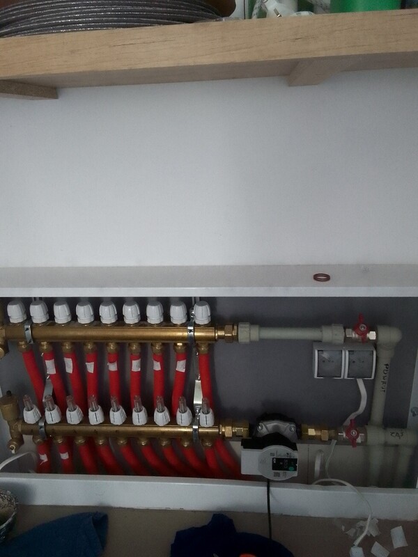 Witam, w szeregowce mam garaz na poziomie -1 gdzie jest piec kondensacyjny Termet Ecodance Gold Plus 24 oraz 1 kaloryfer. Na poziomie 0 mieszkanie 91 m2 i 100% podlogowka. Posiadalem rozdzielacz jak na zdjeciu Ogrzewanie podlogi bylo bardzo nieefektywne i przerobilem go na ten ponizej, usunalem zestaw mieszajacy. Nie wiem czy to wazne ale Szklanki od rotametrow bylo cale brazowe i je odkrecilem bez odkrecania rotametrow i wyczyscilem je. Podlaczylem pompe i uzupelnilem cisnienie wody do 1.5 oraz odpowietrzylem, kierunek na pompie jest skierowany w strone rotametrow. Moj problem jest taki ze do rotametrow wlala sie woda do poziomu 3 ale wszystkie sprezyny sa na samej gorze i w ogole nie reaguja, krece rotametrami i nic sie nie dzieje. Slychac ze pompa dziala. Dodatkowo do jednego rotametru w ogle nie wlala sie woda. Nie wiem czy rury byly zle opisane czy ja to dobrze podlaczylem. Na dole w kaloryferze nie slychac aby sie tam woda przelewala. Bardzo sie napracowalem i nic nie dziala. Dodam jeszcze raz ze czyscilem szklanki rotametrow i tylko je odkrecalem. Plisss Pomocy!!