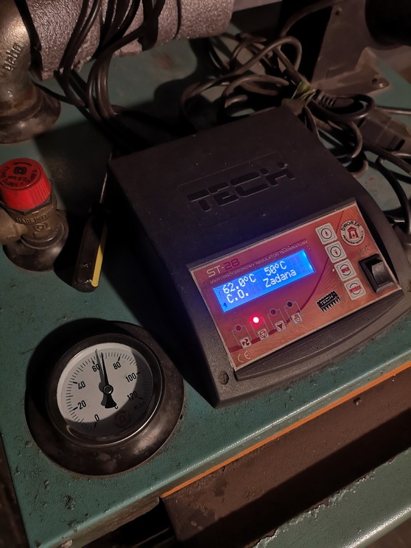 Witajcie. W tym roku nabyłem dom z istniejącą już instalacją centralnego ogrzewania. Niestety nie mogę dojść ładu z klotłem i temperaturami, które często lecą powyżej tej zadanej na sterowniku jak i piecu. Przez ostatnie tygodnie bawię się ustawieniami, aby dostosować ekonomię w spalaniu węgla itp, ale niestety bezskutecznie. Poniżej podaję parametry: - Dom pow. 200m (ogrzewanego parteru ok 130m) - w całości podpiwniczony, ocieplenie 5cm ścian, oraz stropu nad piwnicą. Góra nieużytkowa. Rurki CO idące przez jej powierzchnię, aby można było kiedyś rozbudować instalację. - Piec - kocioł dworek (niestety tutaj brak tabliczki znamieniowej, ale podejżewam, że moc to jakieś max 19kw) - zdj 1 - Grzejniki aluminiowe starego typu 8 szt. bez głowic termostatycznych, rozkręcone na maxa. - Układ otwarty ze zbiornikiem wyrównawczym, wspomagany pompą obiegową LFP (zdj 2) - zbiornik CWU bez pompy. - Sterownik TECH ST-28 - przekłamuje temperaturę o 5-6 stopni względem tej odczytywanej z zegara - czujnik w zasilaniu pieca - chyba norma, bo wiele osób ma z tym ten sam problem. Ustawienia sterownika: Zadana - obecnie 48 stopni Temp załączania pompy - 38 stopni (i tak startuje przy 50 na zegarze z pieca - przekłamanie, o którym pisałem wyżej) Histereza CO - 2 Siła nadmuchu - 4/10 Podtrzymanie - 10 min Przerwa w podtrzymaniu - 20 sekund I teraz problemy: 1. Wyżej wspomniana temperatura - leci powyżej zadaną na ok 70 stopni przy obecnych parametrach. W związku z tym wydłużony został czas podtrzymania, zmniejszona też siła nadmuchu, a pompa pracuje non stop na 3 biegu. Mało tego - zasyp nie jest pełny! Podkładam po jednej - dwie małe łopatki, przez co latanie do kotłowni odbywa się średnio co godzinę, co jest bardzo uciążliwe. Parę dni temu, gdy podłożyłem więcej opału (węgiel typu kostka) temperatura zbliżała się nawet do 80 stopni. 2. Bardzo szybkie wypalanie się opału mimo długiej pracy w podtrzymaniu i krótkiej pracy wentylatora (obecnie używany jest tylko do rozpalania i osiągnięcia temp 48-50 stopni na sterowniku) 3. Kolejny problem z jakim spotkałem się to hałasująca pompa na 3 biegu przy charakterystyce stałoobrotowej - słychać brzęczenie w salonie jak i w korytarzu. Zmiana na bieg 2 skutecznie wycisza pompę, lecz powoduje, że temperatura na piecu jeszcze bardziej się zwiększa. Zmiana na charakterystykę proporcionalną nie przynosi żadnego efektu. Ogólnie problem zaczął się w tym tygodniu, kiedy przeszedłem z krótkiego wieczorego "przepalania" do palenia po 6-8h dziennie... Czy istnieje możliwość jakiejkowiek modyfikacji parametrów sterownika, aby móc spokojnie podłożyć parę łopatek i mieć spokój chociaż na 3h? W dłuższej perspektywie czasu takie doglądanie kotłowni co godzinę jest MEGA uciążliwe. Odniosłem wrażenie, że kominek, który kiedyś miałem w poprzednim domu był o wiele mniej obsługowy niż całe to ustrojstwo. Z góry dziękuję za wzięcie udziału w dyskusji