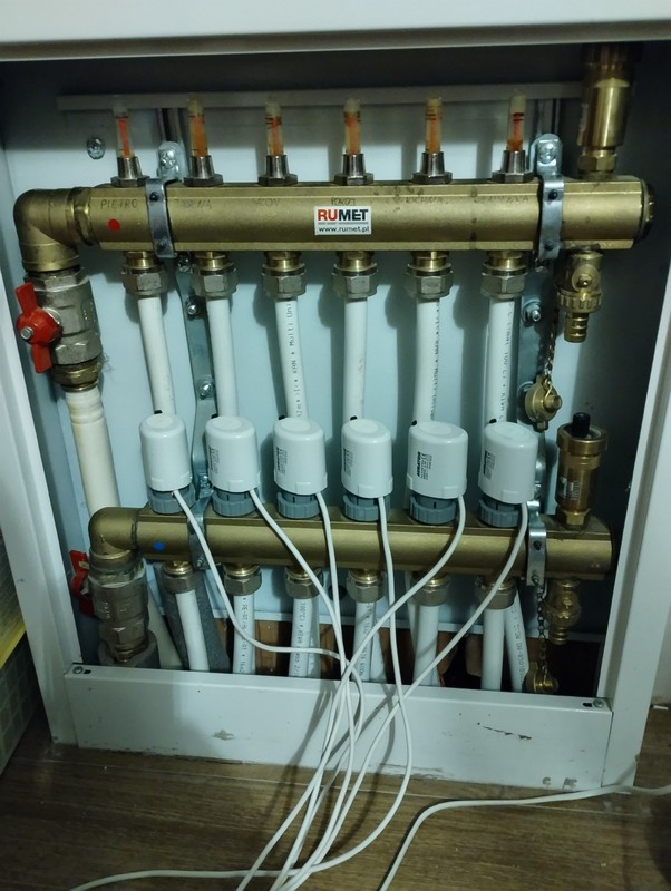 8. Dzień dobry, chciałbym prosić doświadczonych instalatorów o poradę. Mam instalacje C.O mieszaną, na parterze 80m2 podłogówki na parterze grzejniki. Wszystko zasilane z pieca Vailant ecotec i pompa z pieca. Układ wygląda tak, iż rurki na podłodze rozłożone są rzadziej a grzejniki na piętrze są większych rozmiarów. Wszystko zasilane jest woda o jednakowej temperaturze ok 30-35 stopni. Temperatura na parterze to 22 st.a na piętrze 21 st. Dom ogrzewamy już 5 lat i układ taki sie sprawdza. Jednak chciałbym teraz zwiększyć komfort podłogi. Teraz działa to tak że na rozdzielaczu mam pozakładane siłowniki i one zamykają mi pętle jeśli temperatura osiągnie zadaną wartość. Skutkuje to tym że pomimo zadawalającej temp w pomieszczeniu czuje się dyskomfort bo podłoga nie jest ciepła kiedy siłowniki są zamknięte. Wymyśliłem sobie iż założę zawór termostatyczny mieszający aby obniżyć temperaturę która idzie na podłogę. W skrzynce rozdzielacza nie ma zabardzo miejsca ale w kotłowni zostało to tak przygotowane aby w przyszłości można było rozdzielić parter i piętro. Moje pytanie brzmi - czy wystarczy zamontować między zasilanie a powrót podłogówki zawór obniżający temperaturę czy musiałbym dodatkowo montować pompę obiegową za zaworem? Instalacja od pieca jest na miedzi i później przechodzi w PEX. Dziękuje jeśli ktoś zechce udzielić mi fachowej porady.