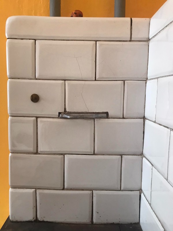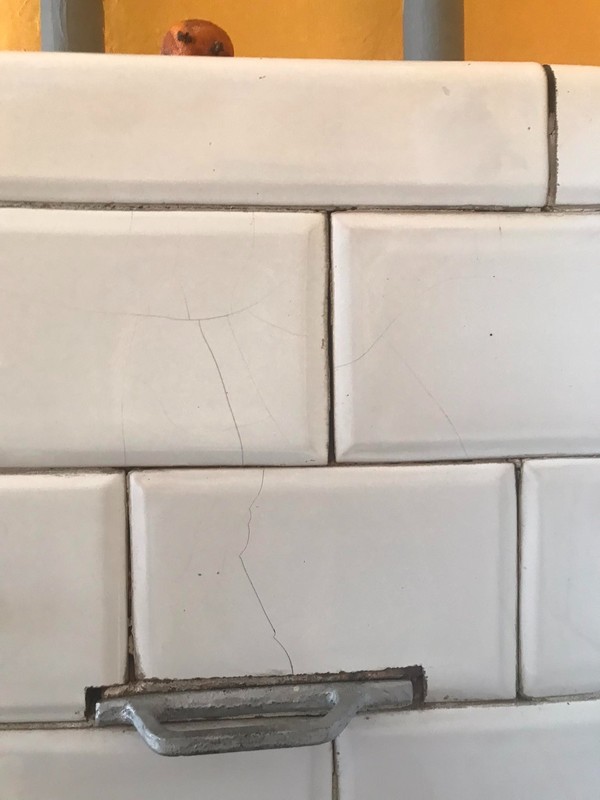 ale boję się tu przebywać, bo wciąż mam wrażenie, że z dnia na dzień rozszczelnienie postępuje zbyt szybko, widać palenisko spomiędzy fug przy piecu w zielonym pokoju. ale dymu brak, nie ulatnia się nigdzie. pęknięcie kafla na kuchni już było, nie nasza robota :P