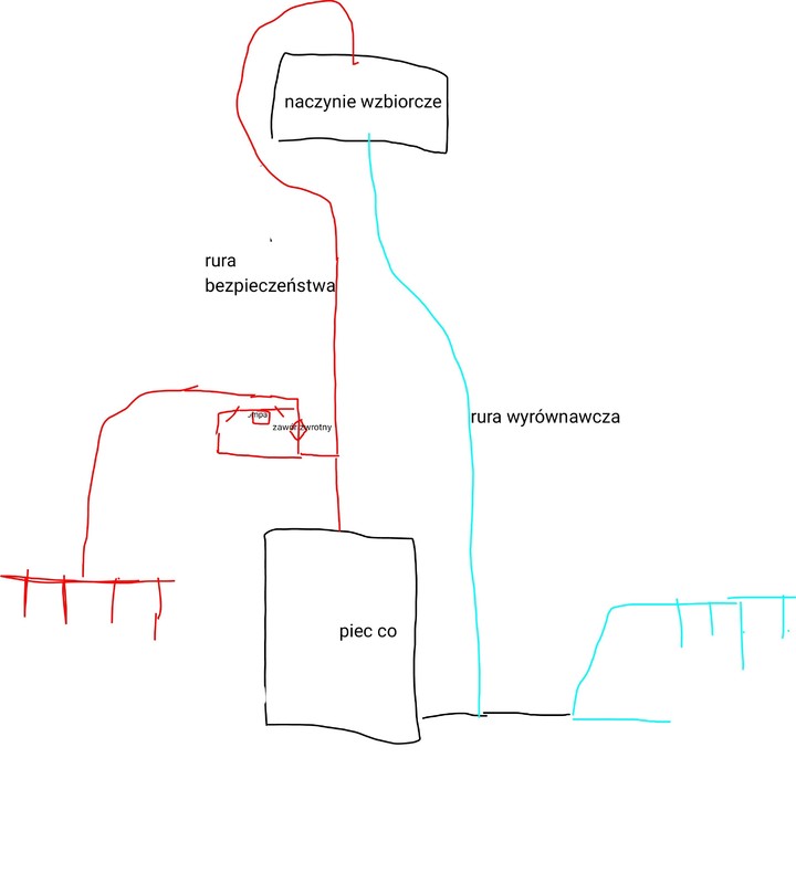 Sprawa wygląda tak: pompka na pierwszym biegu, nie słychać już tego powietrza, lecz reszta bez zmian, kocioł dalej szybko się nagrzewa mimio małej ilości opału w palenisku, 55stopni na piecu a grzejniki mocno letnie Tak przepraszam tu mój błąd, zapomniałem tego napisać, pierwsze co zrobiłem zaglądałem do filtra i był czysty zaworu piłeczkowego jeszcze nie bo to jak nie patrząc wiąże się ze spuszczeniem wody z instalacji a że ostatnie dni były chłodne to musiało się palić cały czas. Zajrzę do niego jutro. W sumie już Chyba nic innego mi nie pozostało. No właśnie na moją logikę też mi się tak wydaje, więc z tego co już tutaj się doedukowałem to jeżeli w moim piecu występuje zjawisko kawitacji to w górnej części płaszcza zbiera się powietrze które pompka mogła zaciągnąć, nie było obiegu i zagotowało piec. Pytanie tylko teraz co zrobić skoro to naczynie mam zamontowane jak mam. Czytałem coś o tej róże bezpieczeństwa i czy ktoś mógł by objaśniać jak to działa? I czy w moim przypadku da się to założyć skoro mam naczynie na powrocie? I czy pompka nie zasię mi lewego powietrza ze zbiornika wzbiorczego jak podepnę w tym miejscu poprzez trójnik? -