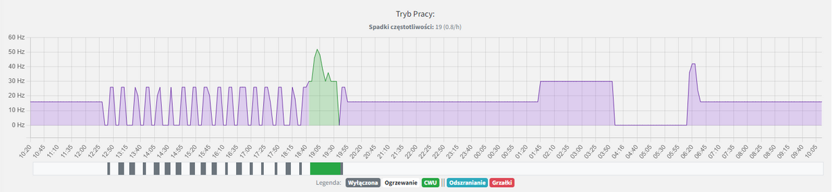 Tyle, że jednak te grzałki się włączają, co widać na drugim wykresie. W chwili wyłączeń różnica pomiędzy zasilaniem a powrotem z grzejników ok 5-6 stopni.