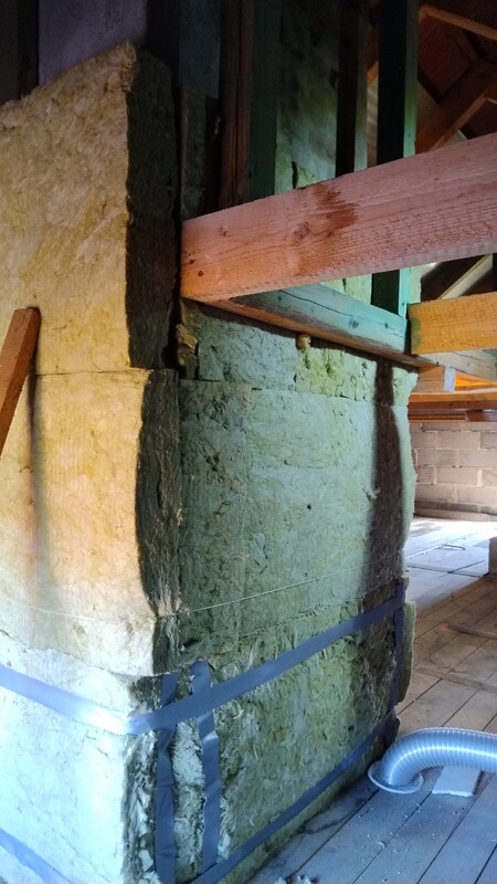 1. Witam muszę ocieplić komin na strychu używam wełny mineralnej skalnej 15 cm dodaje zdj jak zacząłem może ktoś podpowie czy ok czy nie