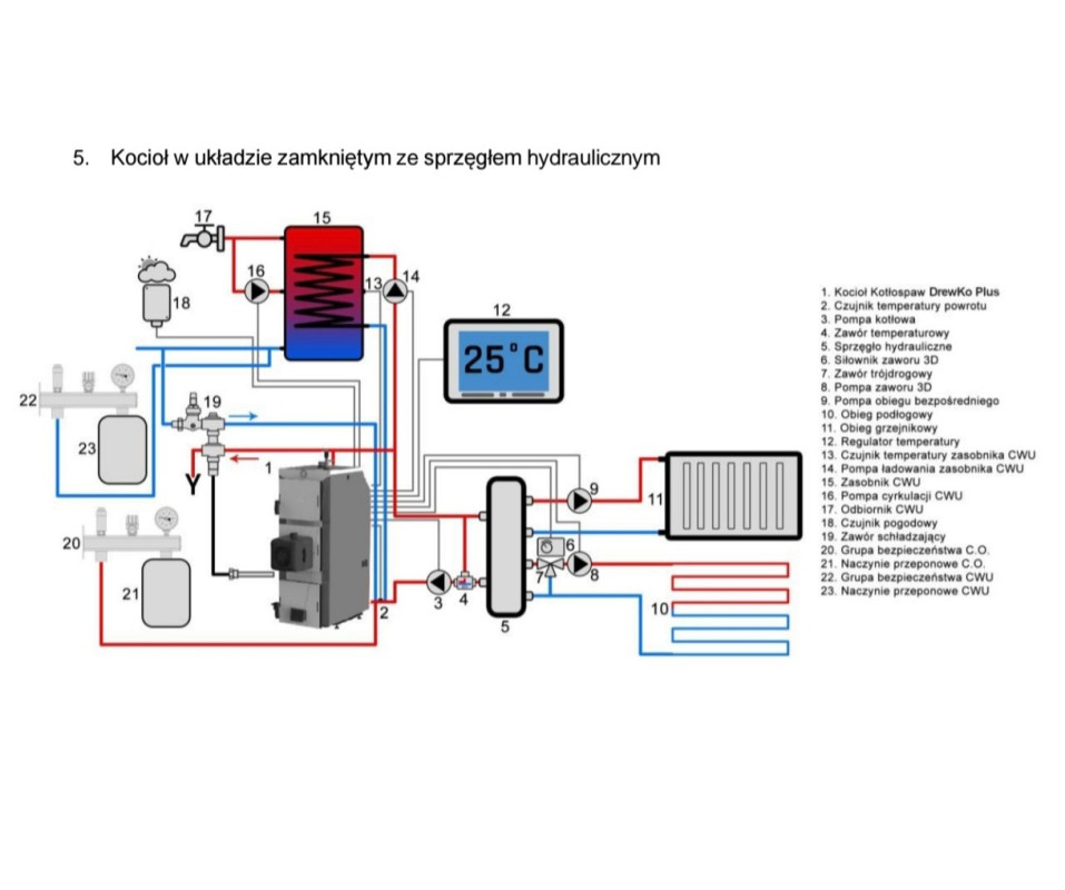 Schemat do oceny kocioł Pelletowy na sprzęgle